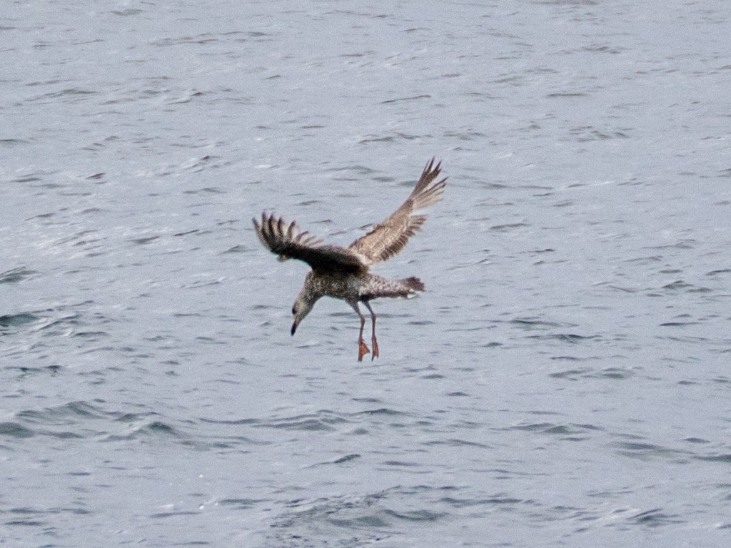 A juvenile herring gull was unlucky to drop its breakfast in the water.
