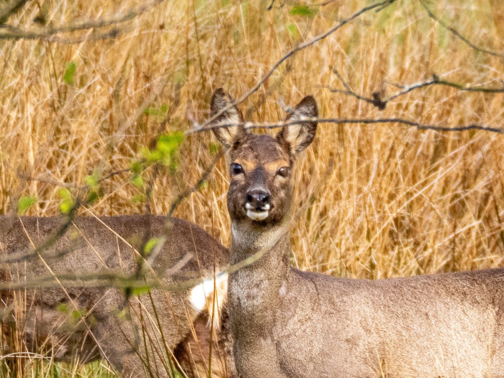 The deer sightings over the last few weeks have been few. As we move into May, the does are calving so perhaps they are moving further onto the moors, away from the footpaths.