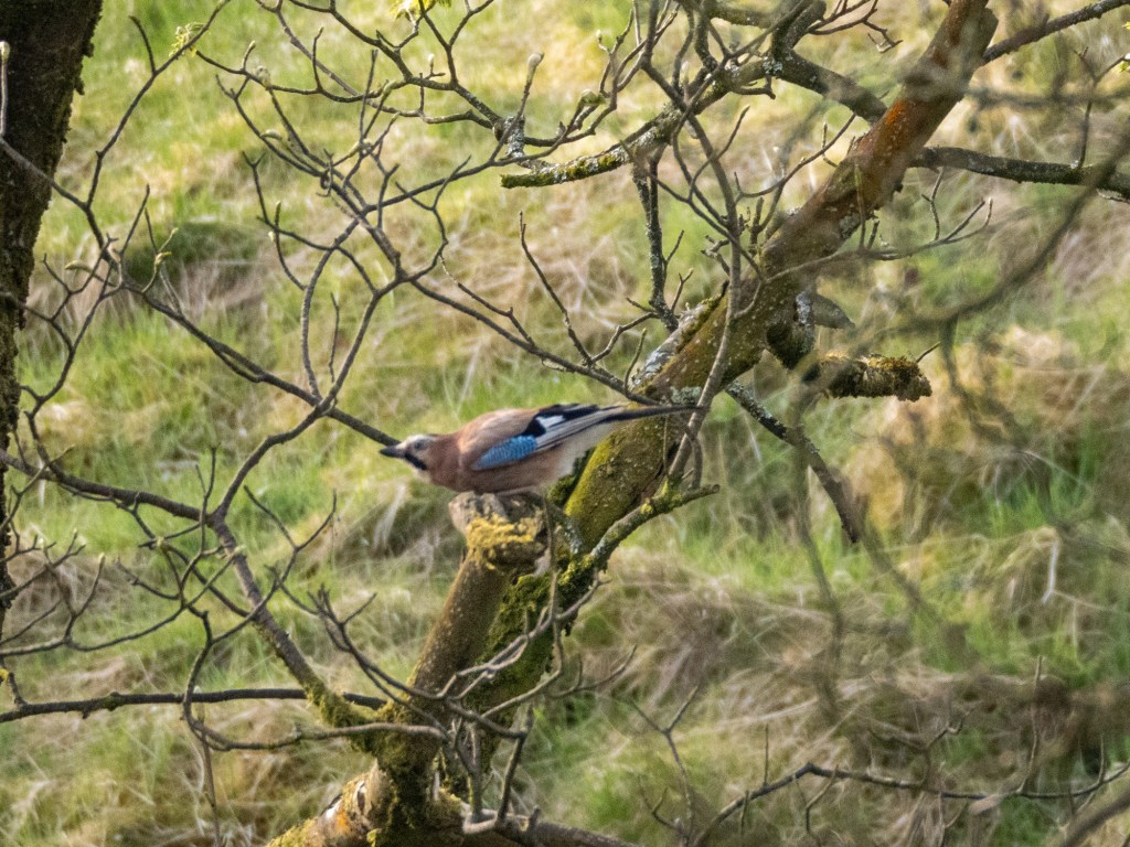 Further down the valley, a pair of Jays were active in the trees and a lone swallow was also waiting on the lines for its friends to arrive for the summer!