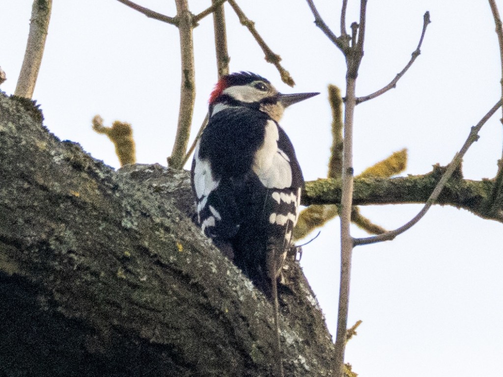 It must have been the day for annual coincidences, as aside from the fox, I also photographed another greater spotted woodpecker, this one an adult.