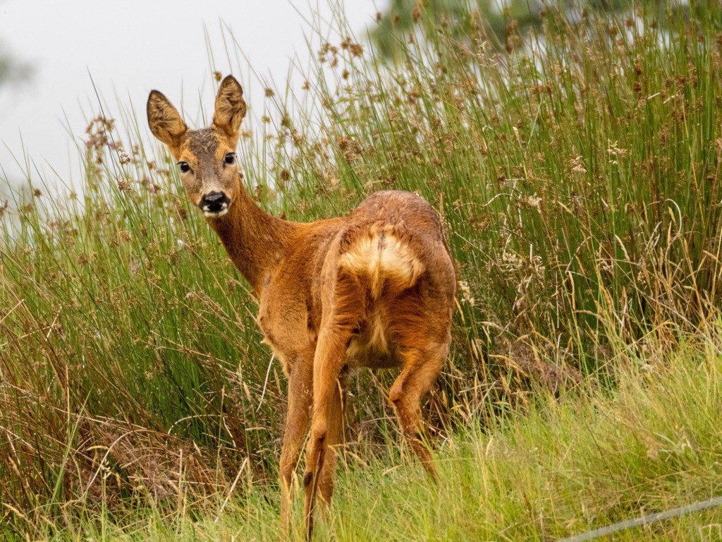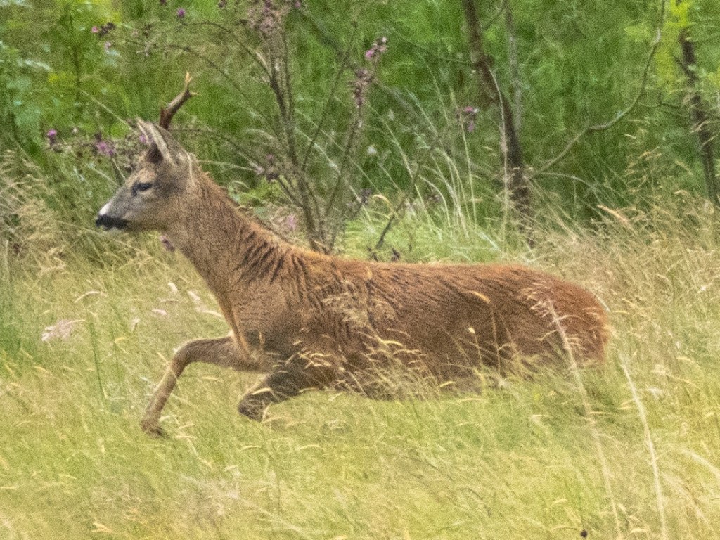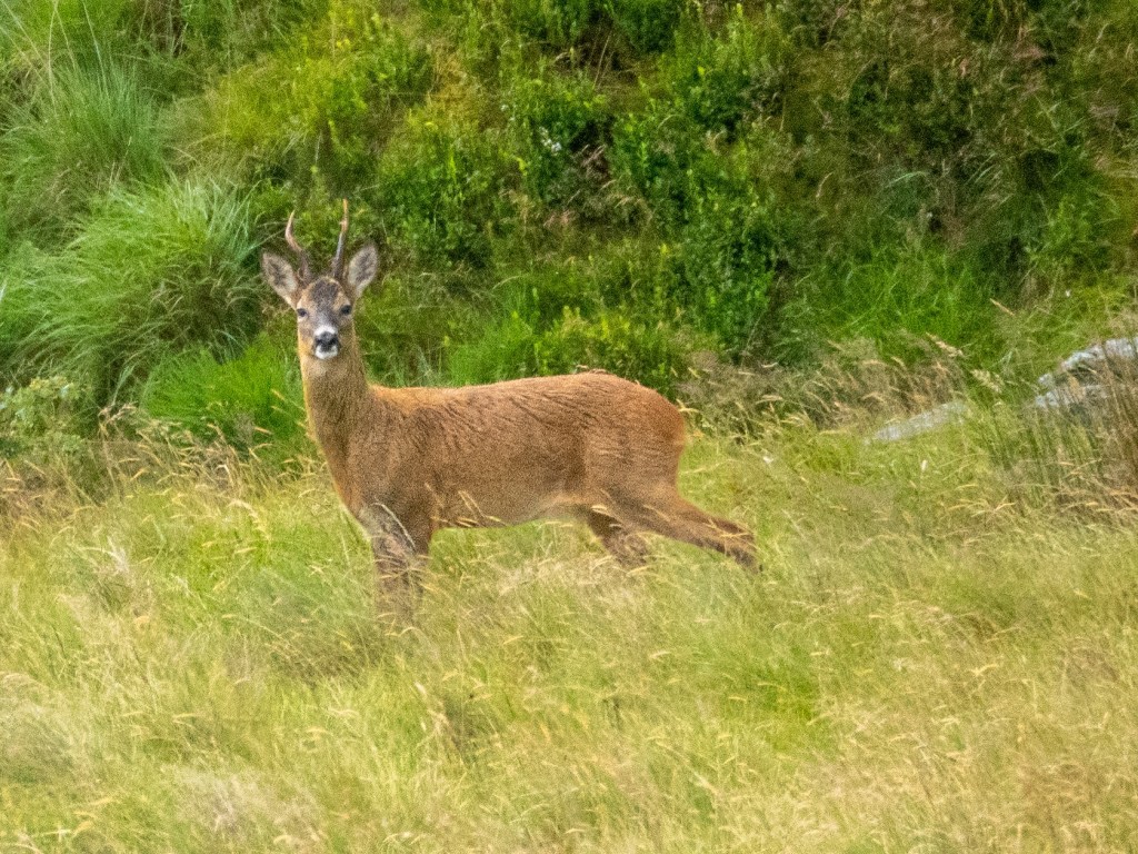 I’ve become a little tired of late of the same morning walk and have been varying my route, but this week I was back on the hills, with the deer as the main event.