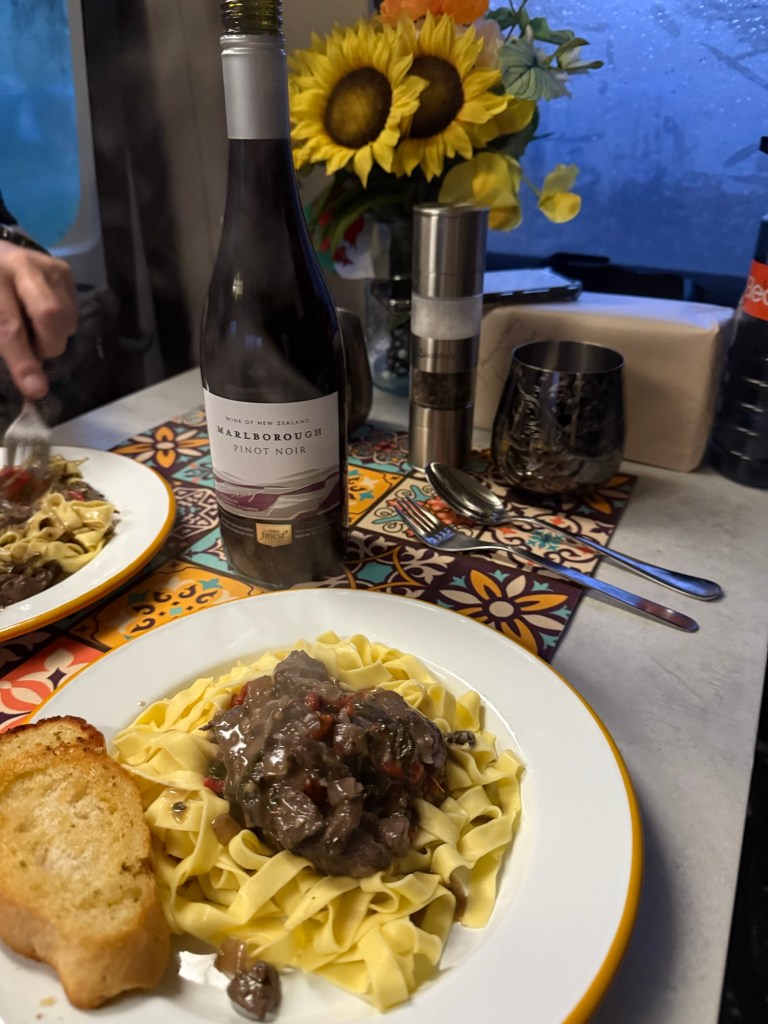 On Friday night, we dined in after some light ales at the pub on the site. We went with beef ragu & tagliatelle from the collection of freezer fare we have hoarded over the last few weeks.