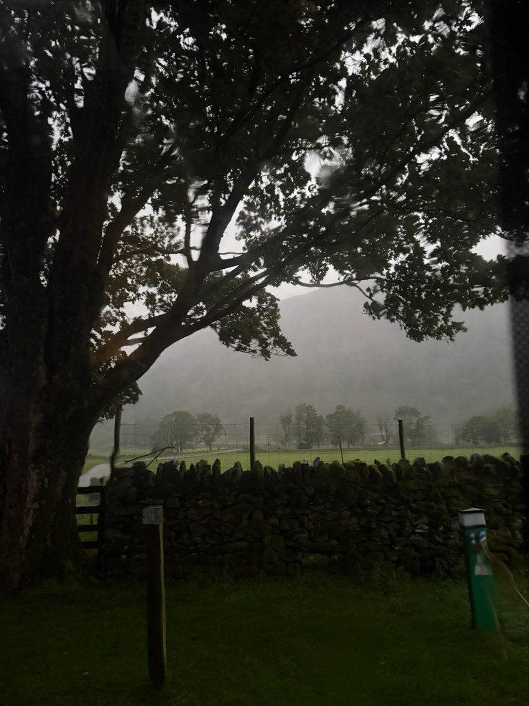 The weather closed in as we ran to the pub for dinner, before returning to the vans for an early night. The unfortunate tent campers were battered by the heavy rain, some of the tents being casualties; but we were smugly snug and dry!