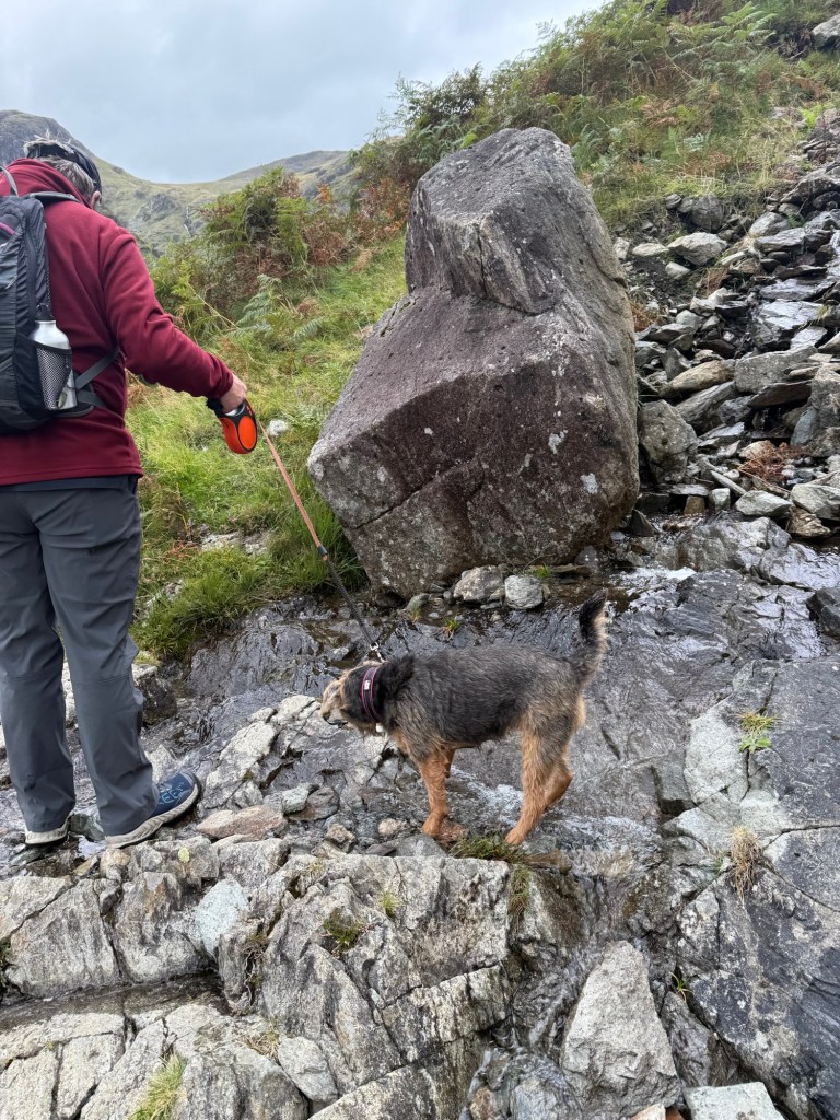 After a solo trail run in the morning, Mark, Pepper and I ventured up the mountain path to the famous priest hole on Dove Crag.