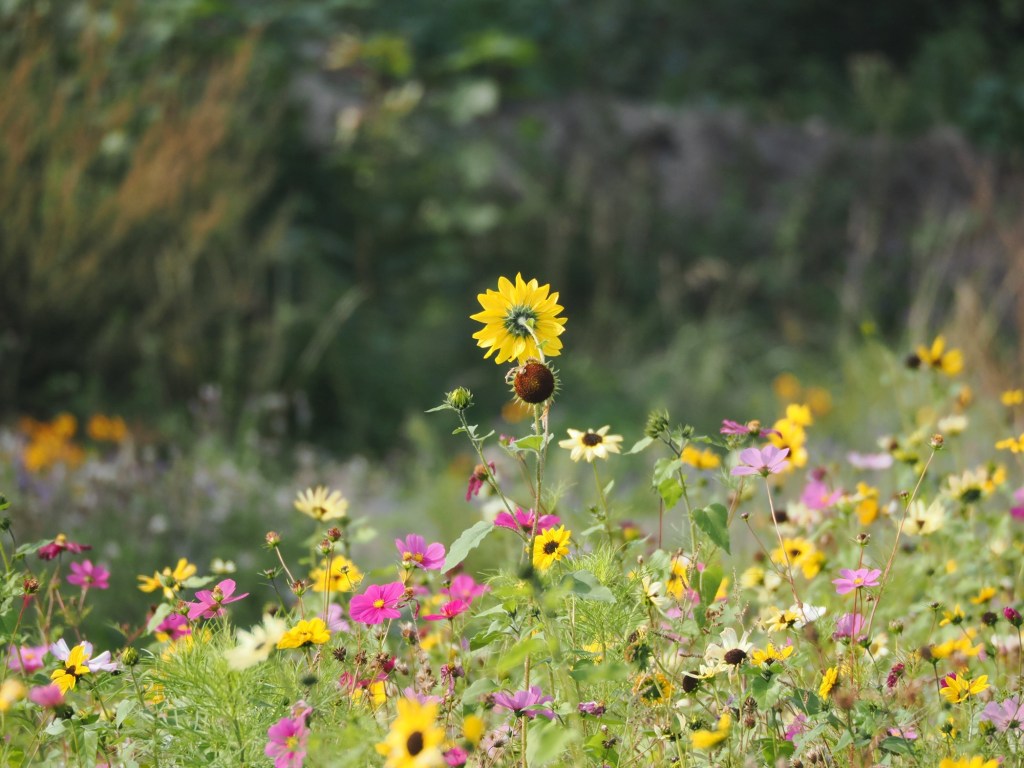 Behind the campsite lay a wildflower meadow, still glowing with colour in the late autumn sun. It was home to a green woodpecker who seemed to mock my every attempt to photograph it — laughing from the trees and vanishing just as I lifted the camera.
