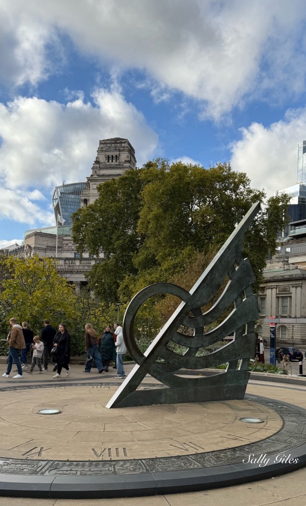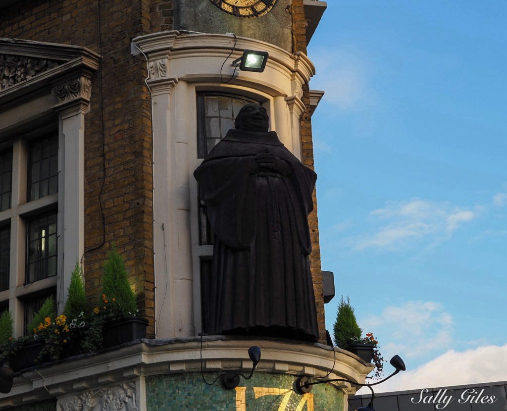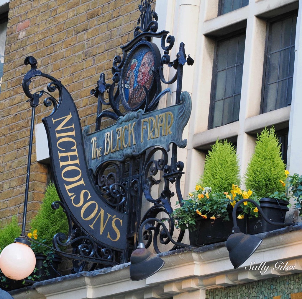 Our route took us past The Black Friar, a wedge-shaped Art Nouveau pub tucked neatly where Queen Victoria Street meets New Bridge Street. Its polished brass and dark green tiles gleamed in the fading sun, and a small crowd was already spilling out onto the pavement. Built in 1875 on the site of a Dominican friary dissolved by Henry VIII, it’s famous for its extraordinary interior — mosaics, copper reliefs and sculpted monks raising tankards in eternal good cheer. Through the window’s, the warm glow within hummed with history and laughter as people drank their ale.
