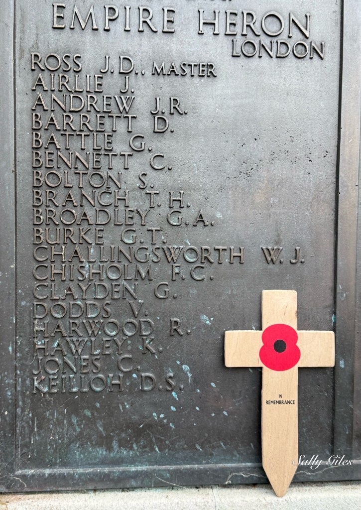 William’s name appears on Panel 42 of the Tower Hill Memorial. We spent a few quiet moments in the garden and left a small cross in his memory before continuing on our way.