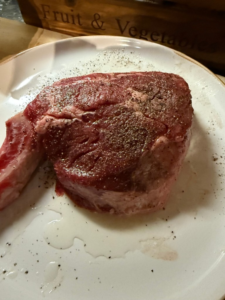 By the time we returned home, we’d been out nearly three hours and Pepper was flagging. She made it back with a heroic effort, then promptly collapsed on the sofa while I set to work on the pudding and prepared a côte de boeuf for Sunday dinner. After a weekend of cycling with the boys and a long drive home, I thought Mark deserved a proper treat.