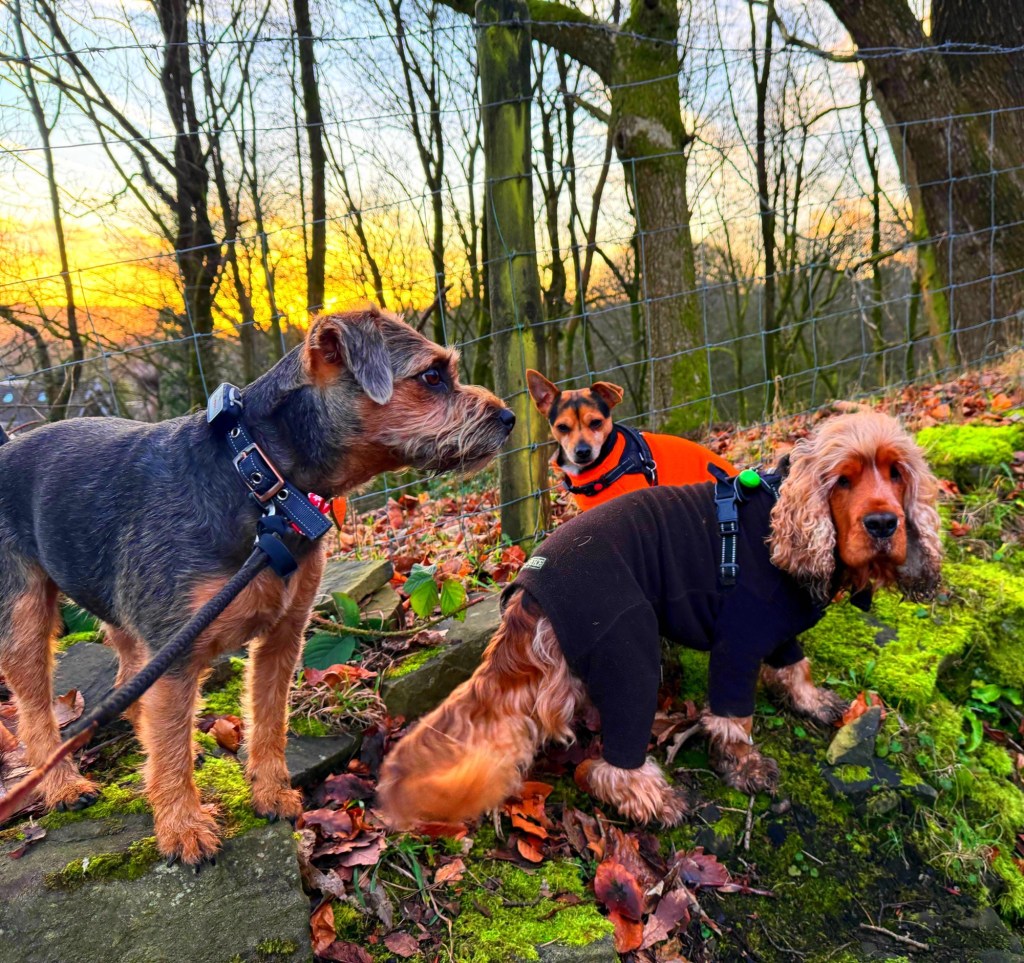 Along the way we met a canine friend — Colin, the local lothario — out walking with Kelly, accompanied by a lovely spaniel. After a brief stand-off, Colin was joyfully admitted into Pepper’s club and zoomies promptly ensued.