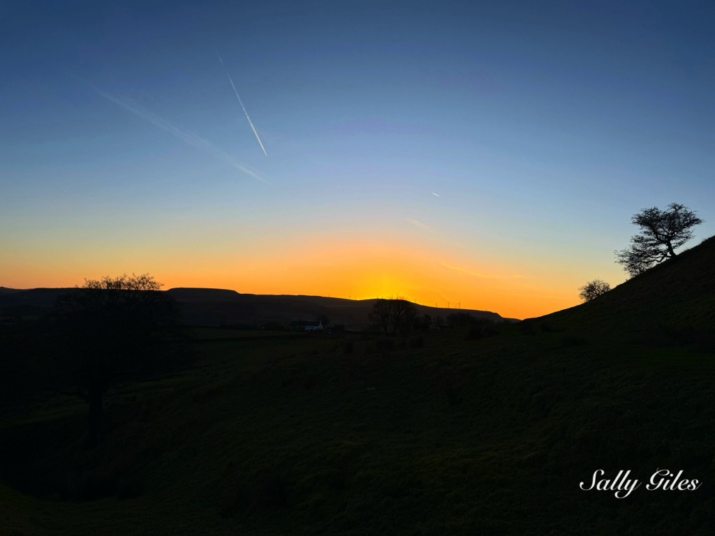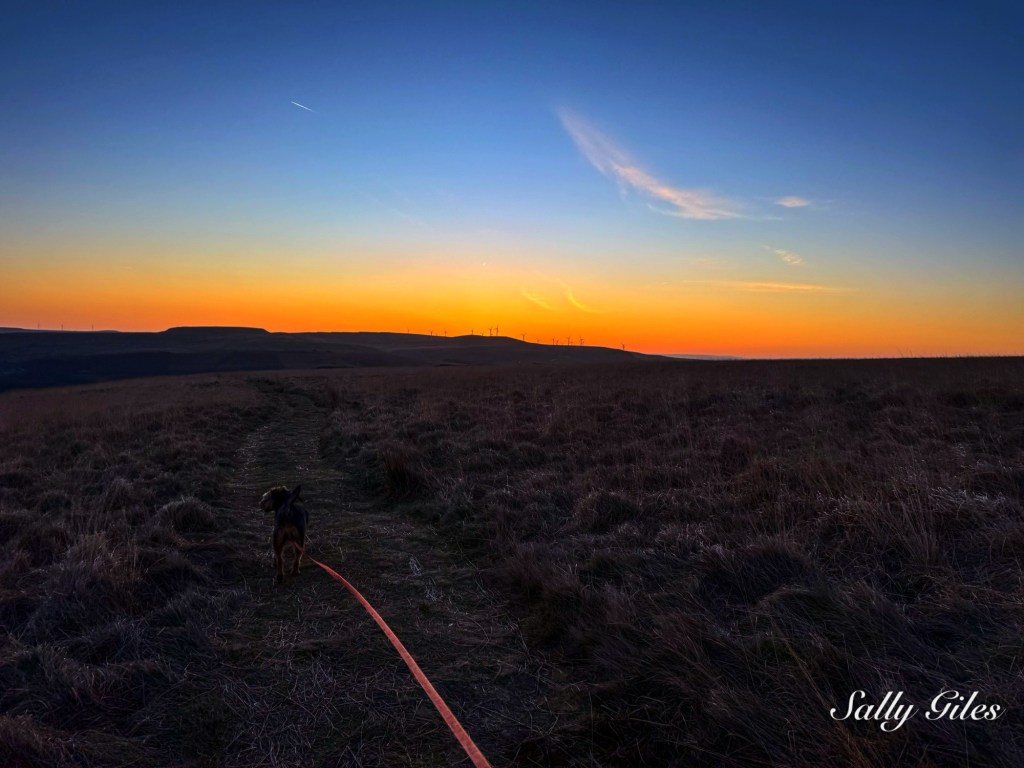 As forecast, Tuesday arrived frost-white and cloudless. We woke before six and stepped into the brittle air before seven, climbing the Tor path to greet the sunrise. I love this time of year: setting off in pale dawn light and watching the sun lift itself above the horizon while we are still out walking, gifting us that first clean blaze of daylight before the working day begins. It never fails to steady the spirit.